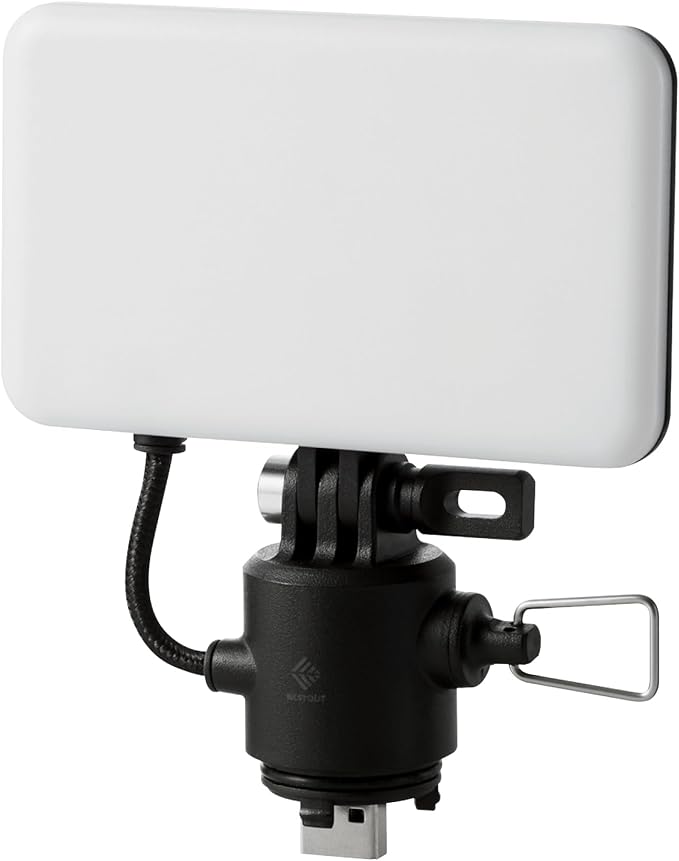 ELECOM NESTOUT Outdoor Camping LED Panel Flashlight w/Mini Tripod, Dimmable USB Powered LED Light, IP44 Water Dust Resistant, 30-1000 Lumen, Portable Lantern for NESTOUT Power Bank, Black (Flash-1)