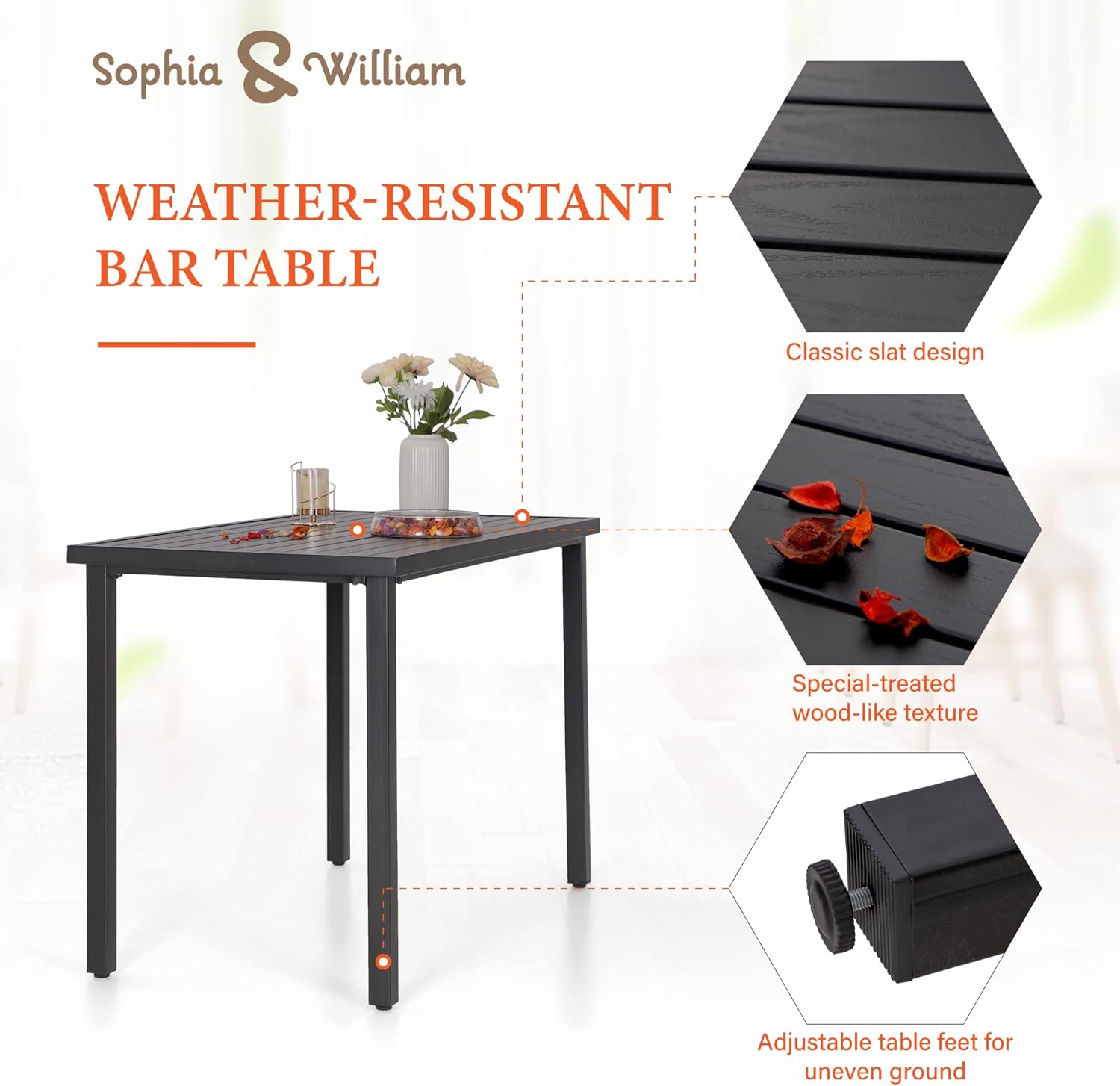- Easy to Assemble: High top outdoor table and chairs set consists of 4 counter height chairs and 1 table, installed according to the instructions. Ideal for both indoor and outdoor use