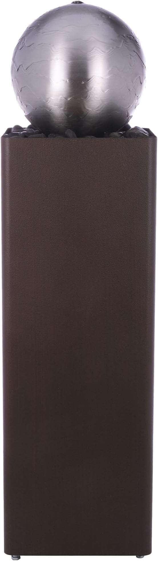 Alpine Corporation CPS188 Indoor Outdoor Modern Metal Orb Water Floor Fountain with River Rock Stone for Patio, Garden and Living Room, 37" H, Brown