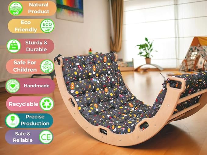 - 𝐂𝐨𝐦𝐩𝐚𝐭𝐢𝐛𝐥𝐞 𝐚𝐧𝐝 𝐅𝐥𝐞𝐱𝐢𝐛𝐥𝐞 𝐃𝐞𝐬𝐢𝐠𝐧: Designed to complement a variety of climbing structures, this cushion works perfectly as a toddler floor cushion, toddler floor pillow, or cushion for climbing arch. Its versatile fit makes it an ideal choice for enhancing comfort during active play or quiet moments.