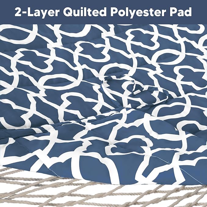 SUNCREAT Double Portable Hammock with Stand Included, 475 lbs Capactiy, Extra Large Two Person Hammock, Blue Pattern