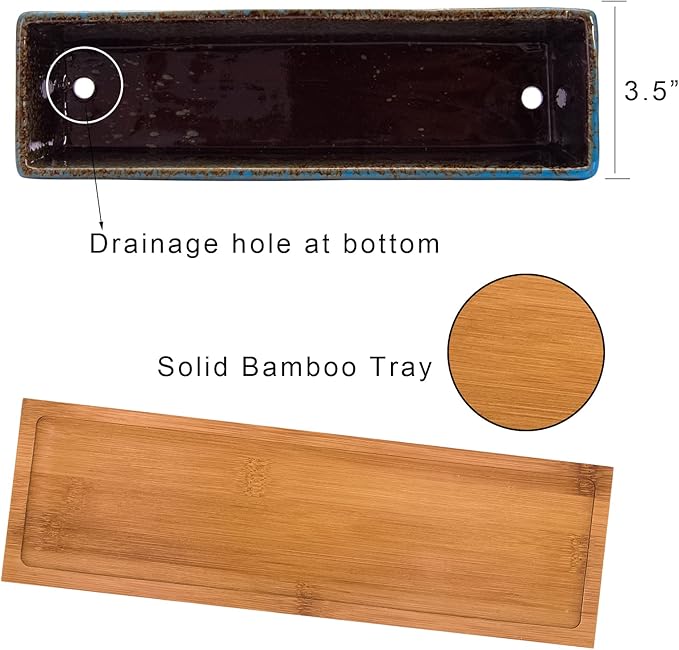 - 【Dimension】The package includes a rectangle succulent planter pot with bamboo tray in perfect size: 12 inch(L)*3.5 inch (W)* 2.7 inch (H). For any quality problems, please feel free to let us know. Artketty will never disappoint any customer.(PLANTS NOT INCLUDED)