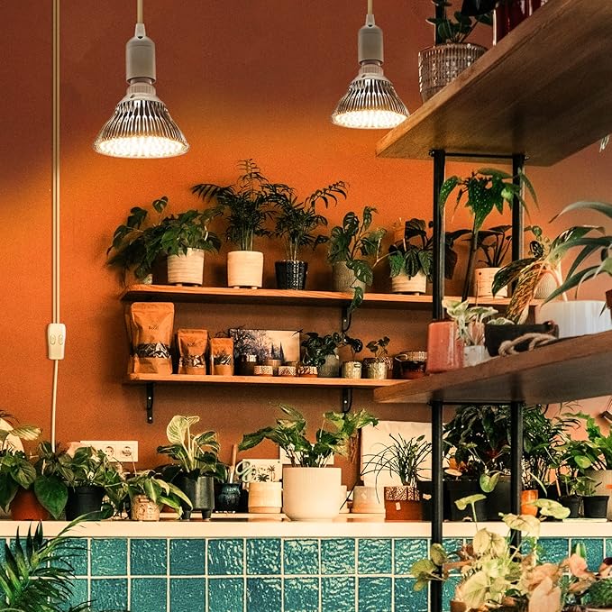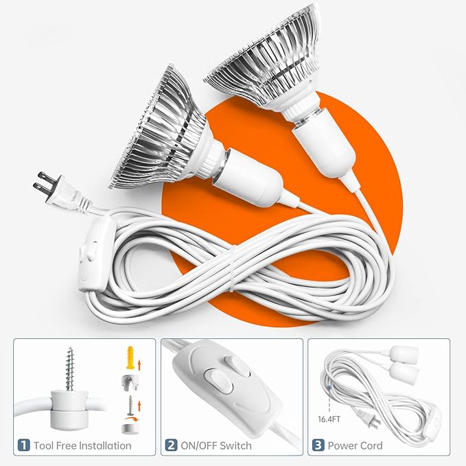 - One Plug with Two Light Bulbs: This LED Grow Light Kit has two grow bulbs, four ceiling clips, and a dual switch power cord that can be up to 16.4 feet in length. Two plant bulbs can be controlled independently by the switch, this grow light kit is easy to install, so you can install plant bulbs indoors flexibly