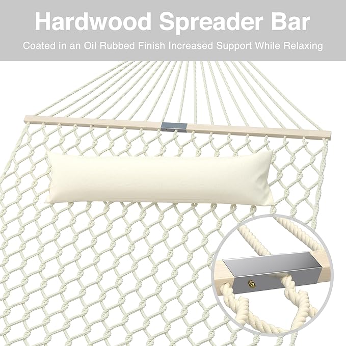 13FT Hammocks, Traditional Hand Woven Cotton Rope Hammock with Free Extension Chains for Outdoor Indoor Patio Yard 450 LSB Capacity for Two Person (Natural)