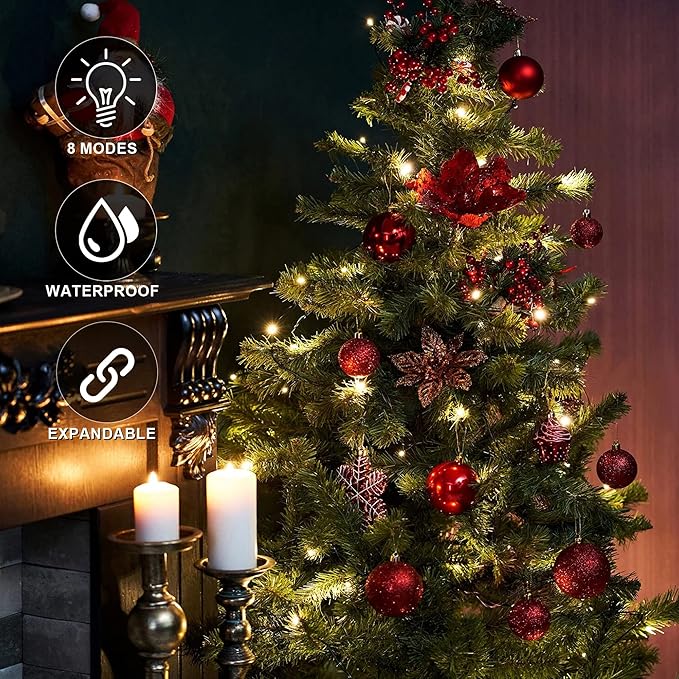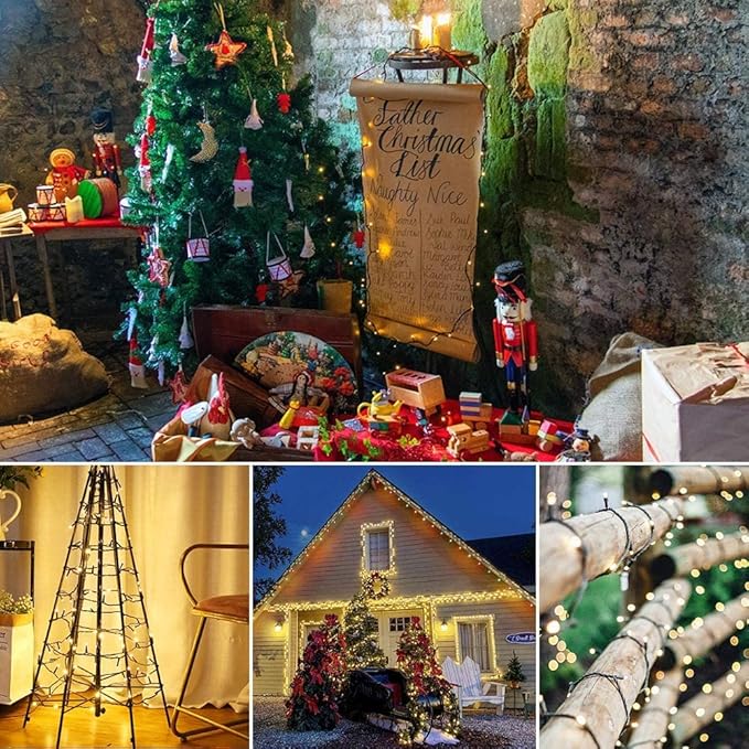 weillsnow 66 FT 200 LED Warm White Christmas Lights,Plug in Waterproof String Lights,8 Lighting Modes with Memory for Outdoor Indoor Garden Tree Christmas Party Decorations(Warm White)