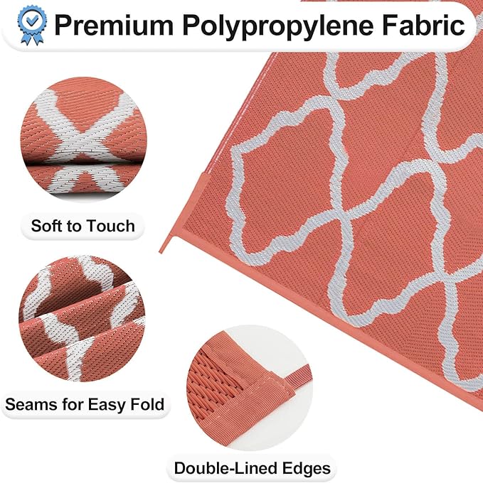 - EASY TO FOLD, STORE AND CLEAN: These plastic camping rugs with foldable lines are easy to clean, store and carry but no worries about spills or sand and dirt outside; Simply sweep up these patio rugs with soft brush or towel to remove dirt or hose down for a deeper cleaning, air dry is recommended