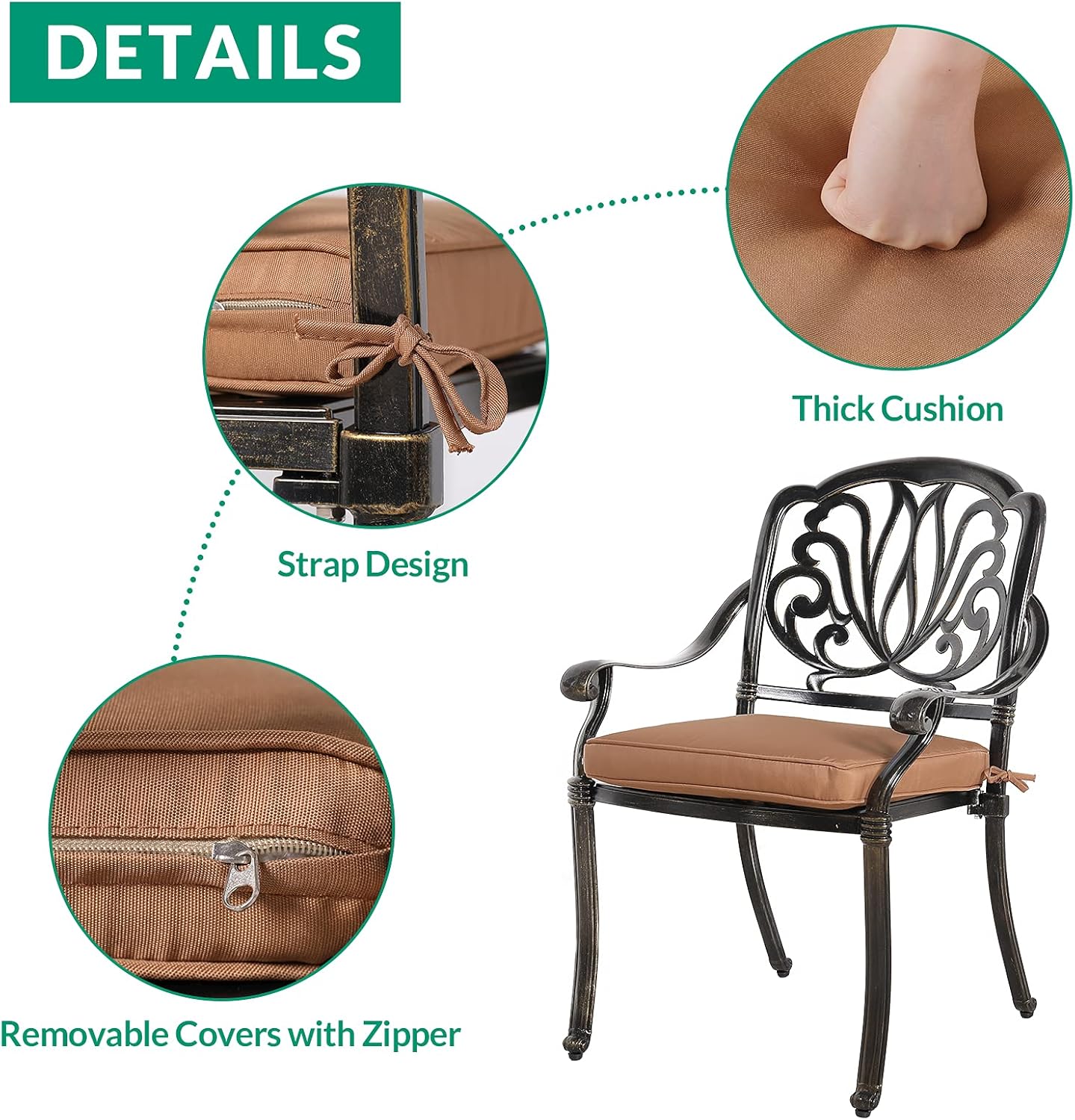 VIVIJASON 3-Piece Patio Bistro Sets, All-Weather Cast Aluminum Bistro Table Set Outdoor Patio Furniture, Include 2 Cushioned Chairs and 35.4" Round Table, 2" Umbrella Hole