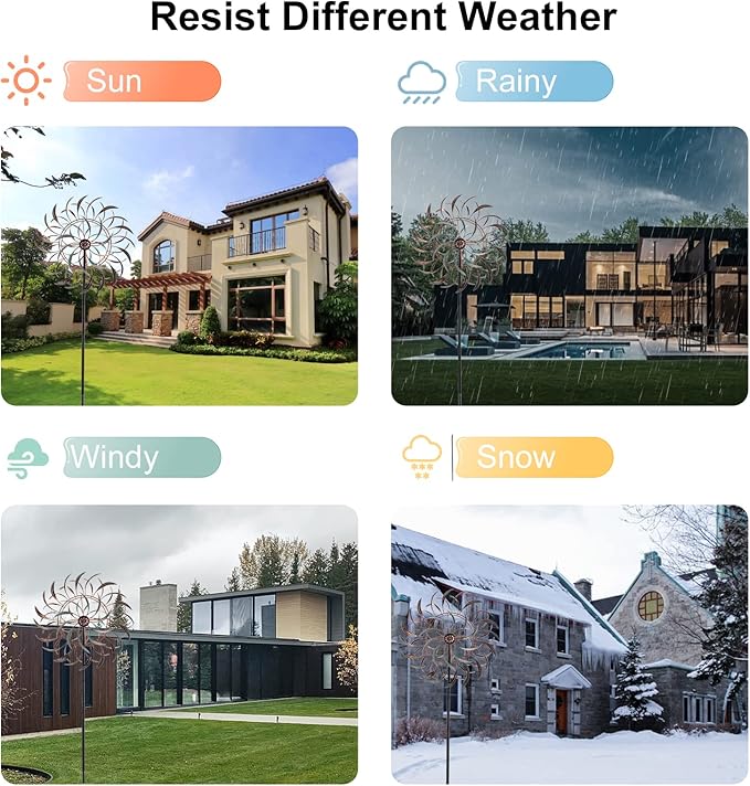 - Flexible Rotate: Metal wind sculptures having double sides blade can spin independently smoothly on sealed bearings, through reversible dual ball bearings, the pair of blades spin in opposite directions simultaneously. Waterproof wind spinner with the durable paint on the blades surface, can withstand most weather conditions