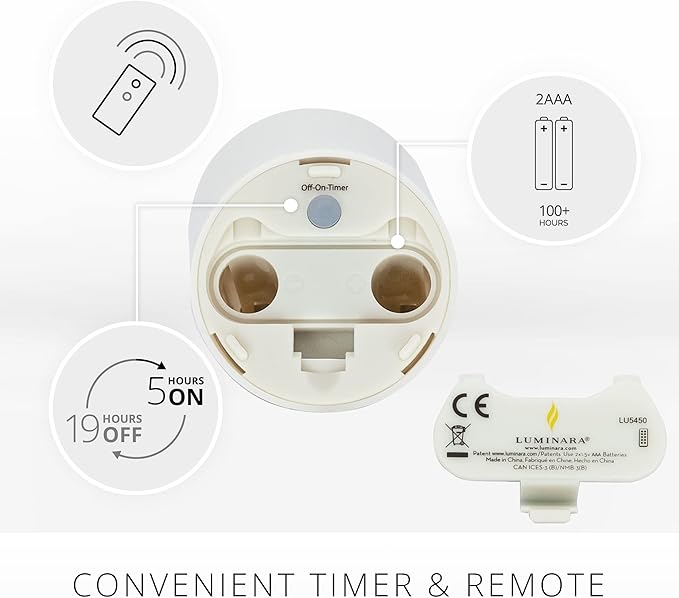 - This outdoor votive candle have an automatic timer with a 5 Hours On/19 Hours Off cycle. They can be operated with a remote (remote ready), which is sold separately. They also can be turned on and off using the switch on the bottom of each candle.
