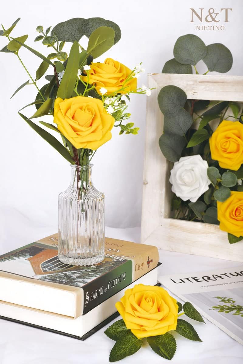 N&T NIETING Artificial Flowers, 50Pcs Fake Flowers Roses Perfect for DIY Wedding Bouquets Centerpieces Bridal Shower Party Home Flower Arrangement Decorations, Gold
