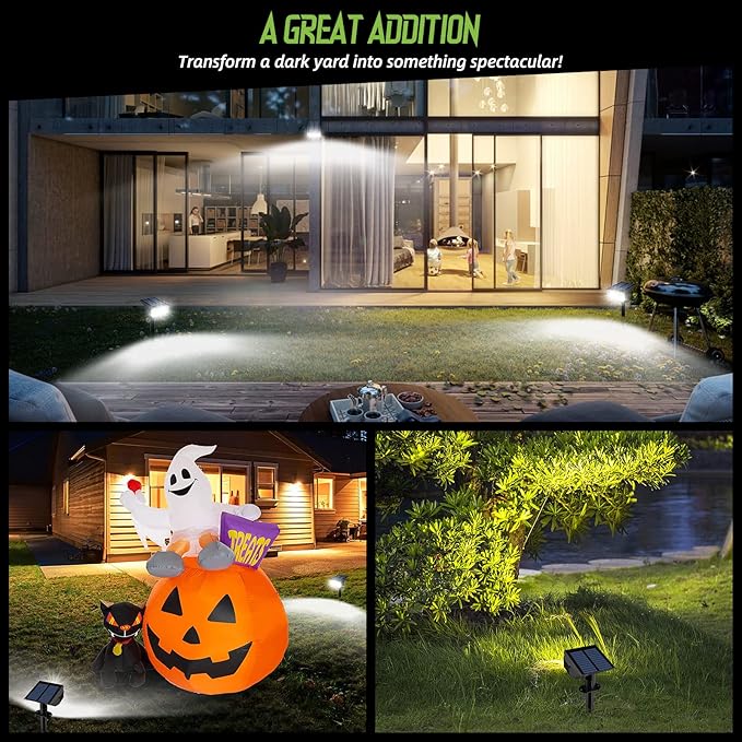 - A Great Addition & Widely Application: Transform a dark yard into something spectacular! More outdoor solar lights create a great experience. 1. Highlight the flower bed, the tree, pool, and flag; 2. Take out when camping or fishing at night 3. Security solar light for the pathway, driveway and don't worry the stranger 4. Use in the dark spaces in the backyard for ease of walking at night with the dog