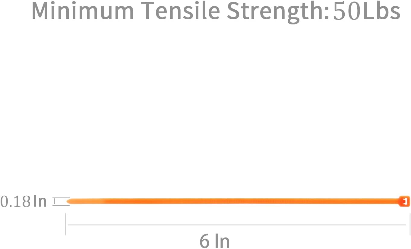 XINGO 100PCS Cable Zip Ties Heavy Duty, Premium Nylon Plastic Wire Ties with 50 Pounds Tensile Strength, Self-Locking Black Nylon Zip Ties for Indoor and Outdoor (6 inch, Orange)