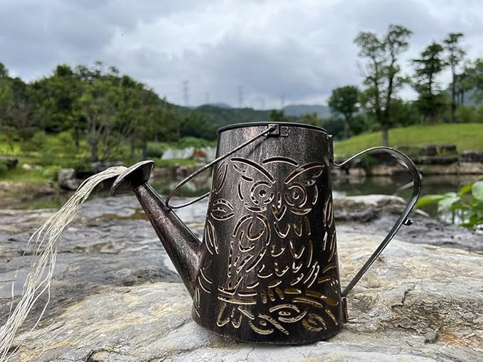 - Creative solar waterfall lights: The Solar Lantern Lights has a unique owl pattern.When the lanterns is lit, a cute owl decor Silhouette,flower pattern on the ground and create a relaxed and comfortable atmosphere. Choose a special place in your yard , the watering can with lights will appear to be pouring water, it is cute flower bed decor.
