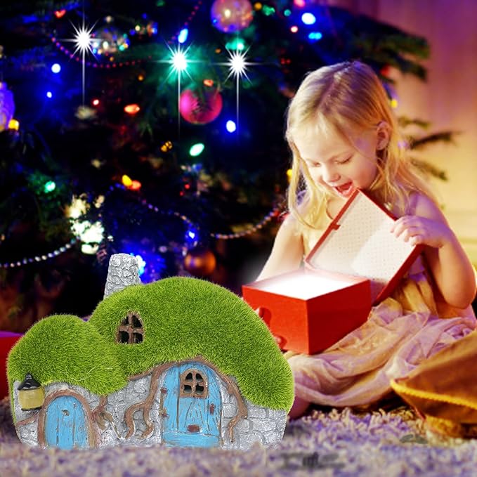 Garden Statues Outdoor Decor - Fairy House with Waterproof Solar Lights Resin Figurines for Yard Lawn Porch Outside Ornament or Garden Gift