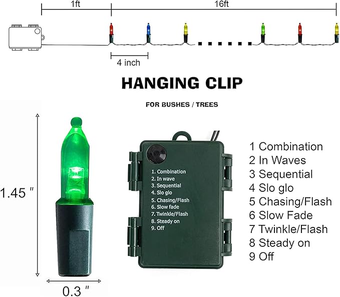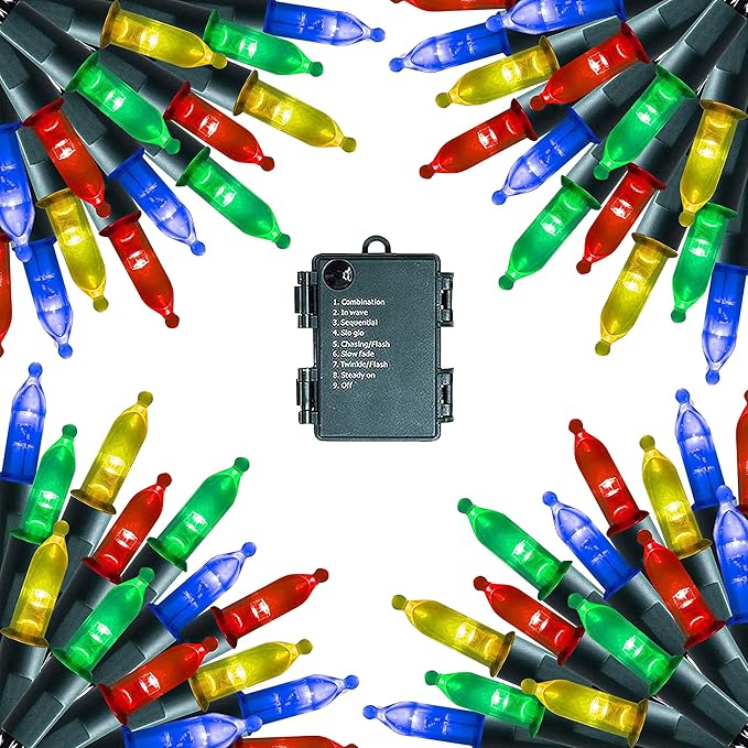 - 8 Lighting Modes: Dazzle Bright mini string lights has 8 different lighting methods, including combination, in wave, sequential, slo glo, chasing/flash, slow fade, twinkle/flash, steady on. Press the button on the battery box to select the lighting mode you like.