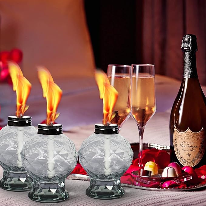 - Easy to Refill: Open the glass table torche cap and add torch oil, which can be refilled and used again. Please use the lid to extinguish the glass table torch flame