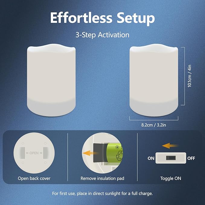 - SOLAR POWERED: Light up your night with dusk-to-dawn candles These classic pillars turn on automatically at nightfall and stay on for 10+ hours. [Rechargeable batteries included]