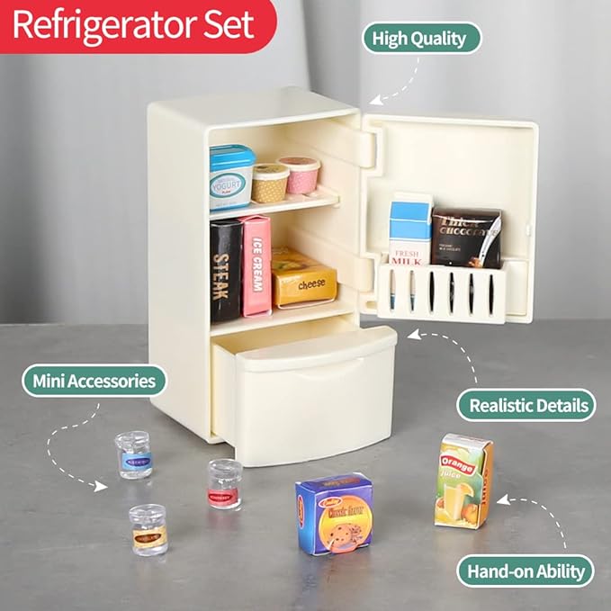 - 4 Set Dollhouse Furniture:Our doll house accessories set contain with bathroom,laundry room,kitchen and refrigerator.Each set of dollhouse toys includes a wealth of accessories.Kids can decorate own dollhouse with these dollhouse accessories and creating their dream home.