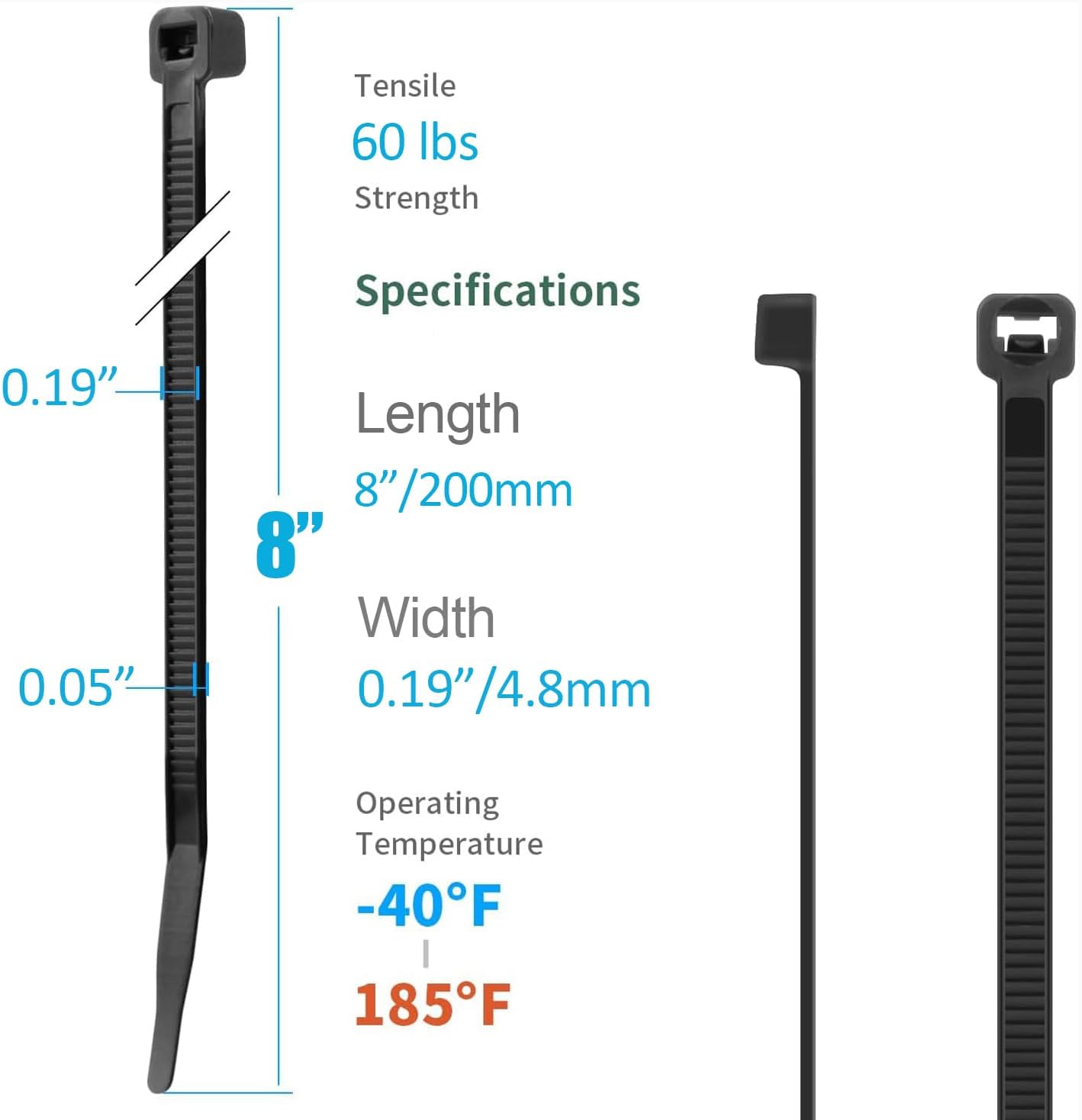 - ★【Great Design】Self-locking fastener design, sturdy and durable, easy to operate. The width of our cable tie is 0.18 inch/4.8 mm, which makes the cable tie stronger than the same size cable tie on the market and tensile strength could handles most purpose of binding in life.