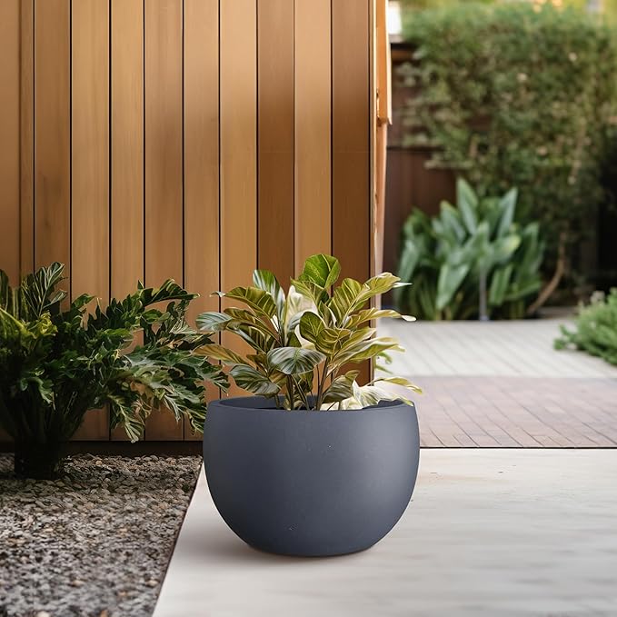 Kante 11.8" Dia Round Concrete Planter, Outdoor/Indoor Large Bowl Plant Pots with Drainage Hole and Rubber Plug for Garden Patio Balcony Home, Charcoal