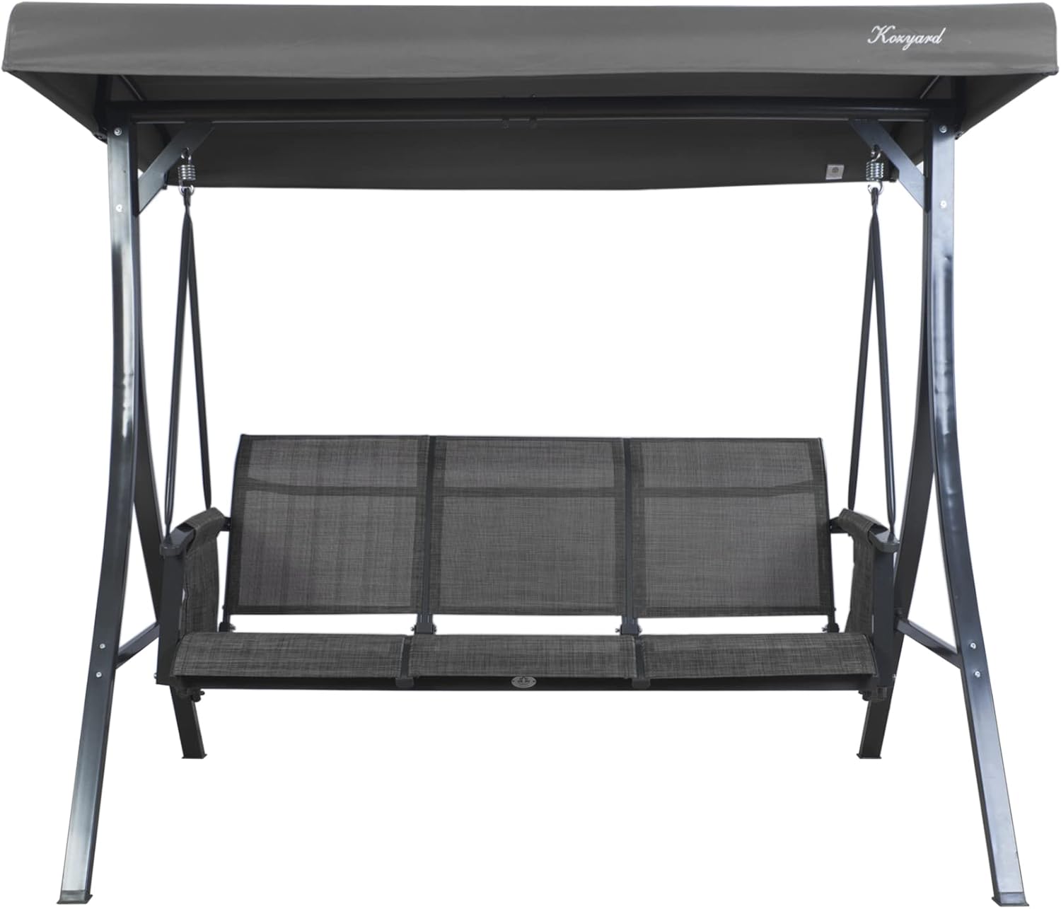 - ✅3 Person Seating Capacity - This porch swing with canopy has a comfortable, long bench seat design with room for three. Suitable as an outdoor swing chair, garden swing, backyard swing, lawn swing, patio swing chair, deck swing, or a yard swing.