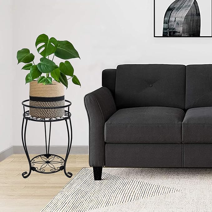 - CLASSIC FLOWER PATTERN – This 2 tier plant stand conformation is classic flowers pattern, cute and beatiful flower pot stand is a decoration itself, could blend well with your furniture style, improve the decor of your living room, bedroom, garden, office, balcony and more. You can also put some kitchen or bathroom supplies.
