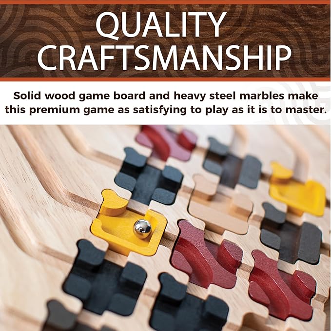 - Premium Brain Puzzle Games: Ideal as tough puzzles for smart kids who love cool puzzle toys, this premium edition of the classic marble rush game features a 12" x 15" solid wood board, beautiful solid wood tiles and heavy steel marbles