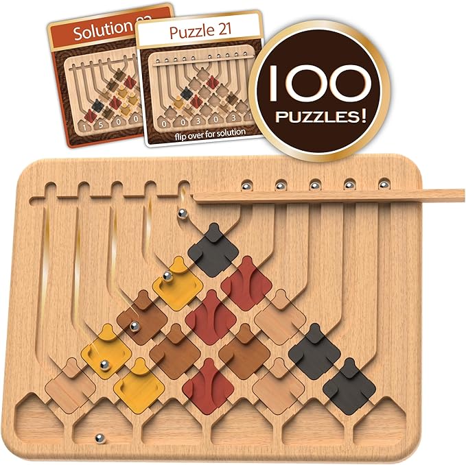 - This set of brain teasers for kids includes 1 wooden game board, 1 wooden gate, 15 wooden tiles, 10 steel marbles, 100 puzzle cards and rules (Ages 8 and up)