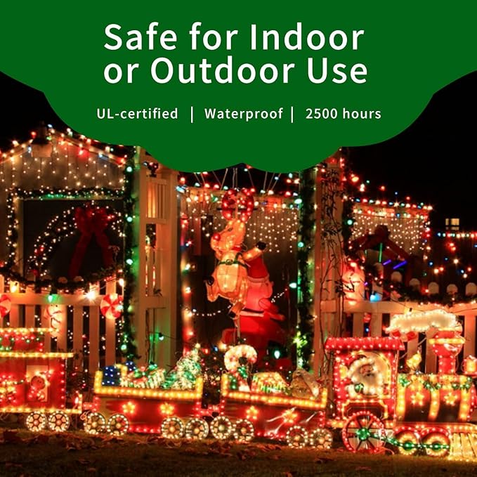 - 【Ultra-Bright Christmas Mini Lights】:The 300L Christmas Light Set include ultra-bright Incandescent bulbs which are much more bright than normal ones(+50% brightness).It is a great way to add a little sparkle to your display.