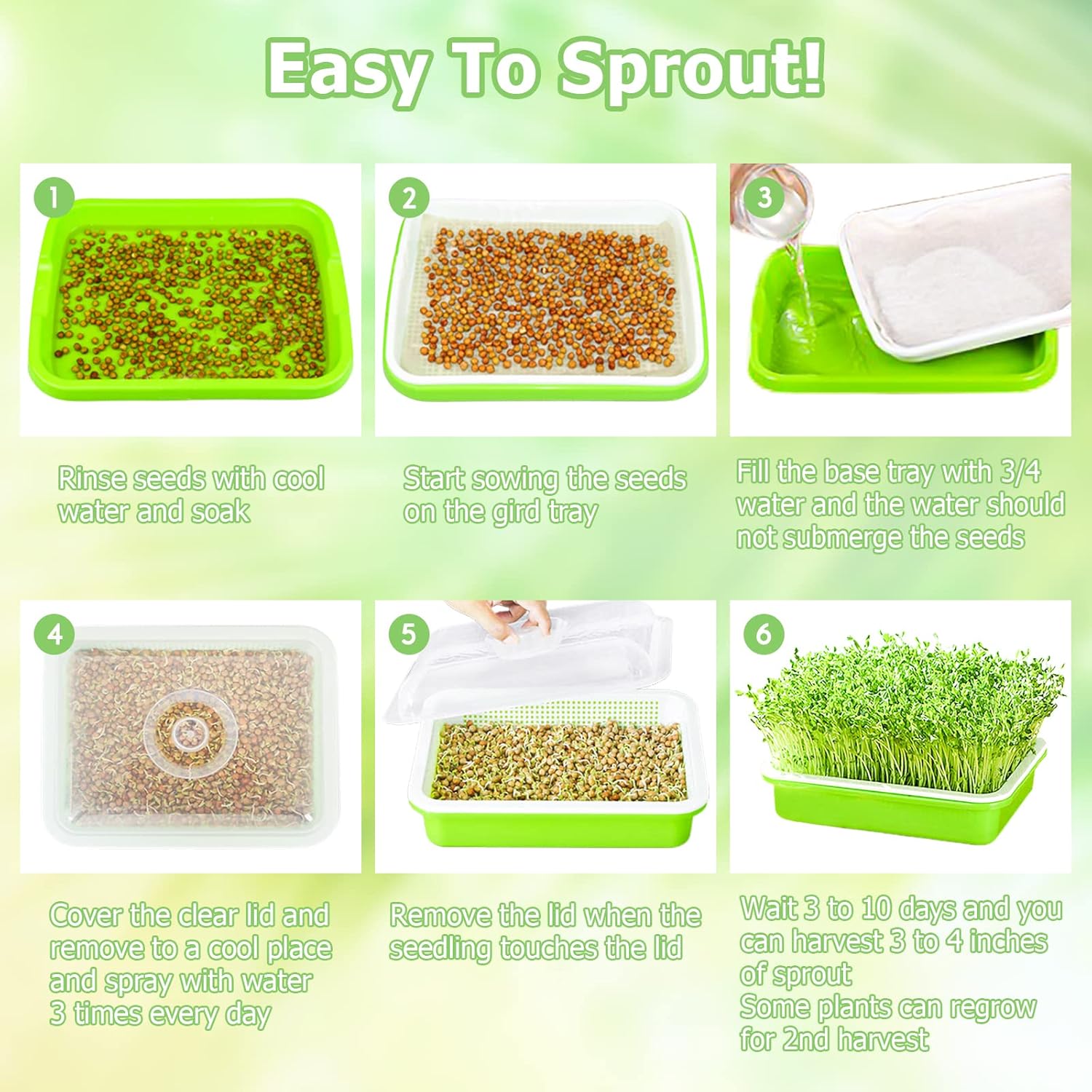 - Longlasting & Healthy: Seed sprouting tray for sprouts are made of high quality food grade PP material, tasteless and sturdy; You can use these seed sprouter trays with cover with confidence and enjoy healthy and green food at home, adding healthy veggies to your table