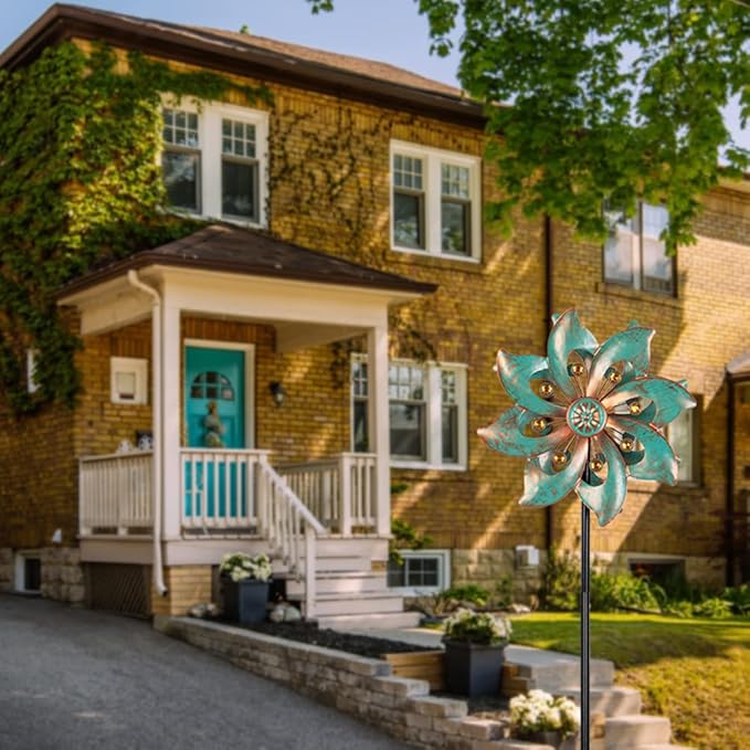 - Double Wind Spinners: Outdoor wind spinner is made of rustproof and waterproof metal. The blades emit brilliant colors as they spin with the wind, creating a beautiful visual experience in the garden