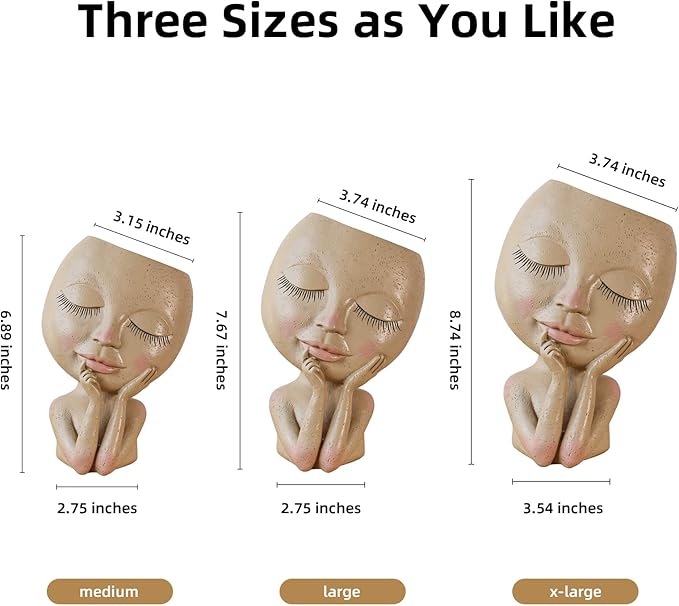 AIMEBBY Face Planter Pot - Face Flower Pots for Indoor and Outdoor Plants - Resin Head Planter Pots with Drainage Hole (X-Large Size)
