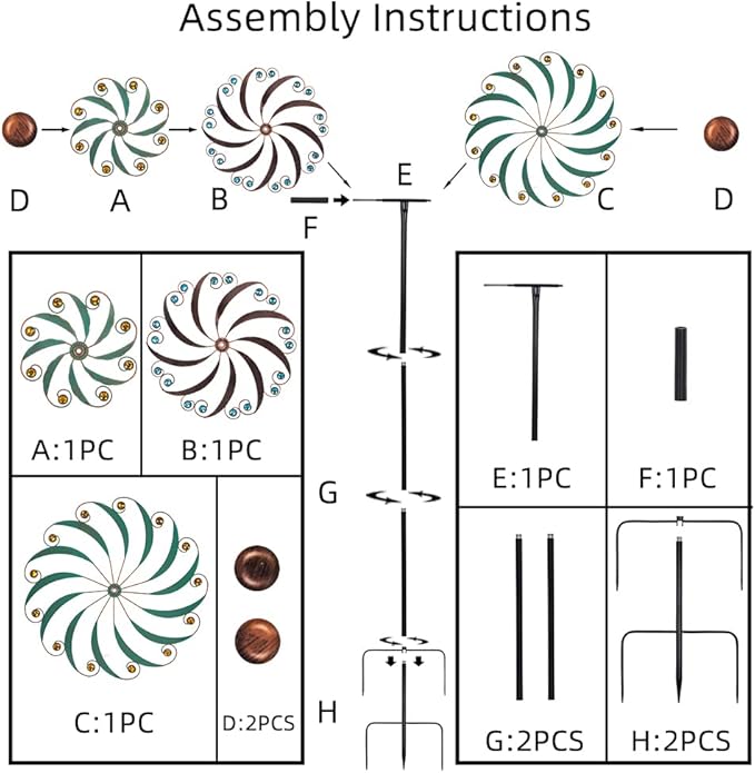 - Easy Installation: 3 layer wind spinner easy to install, the whole process only cost you 2-3 minutes. You can insert the garden wind spinner into the soil or grass easily without any tool
