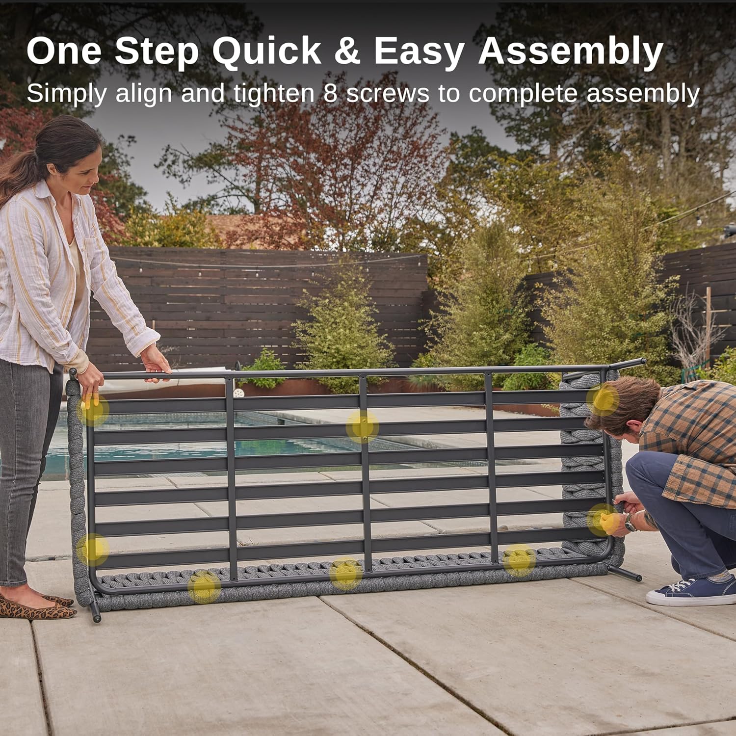 - EASY & QUICK ASSEMBLY IN UNDER 10 MINUTES: East oak outdoor patio furniture 3-seat sofa is easy to assemble with clear instructions and all necessary accessories included. Assembly of 8 screws is all that is needed to assemble the sofa. What's included: 3-seat sofa: 78.3 x 31.3 x 24.4 inches