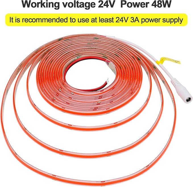 - 【COB LED STRIP】480LEDs/M, 2400LEDs/5M, COB light strips have more dense LED chips, Which make the emitting units nprecedentedly close to each other, and create super even lighting performance. At the same time, it brings higher luminous efficiency.