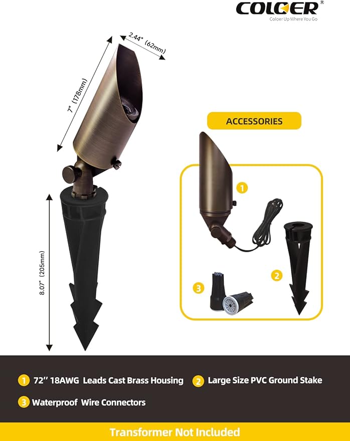 - Lifetime Warranty: The COLOER landscape spotlight uses a design with separate light fixture and bulb, which offers a longer lifespan compared to the non-detachable integrated design. You can replace the bulb without having to replace the entire fixture just because the bulb is broken. We offer a lifetime warranty on the brass light fixture. We stand behind our product with our top-rated customer service. Please don't hesitate to contact us if you have any issues.