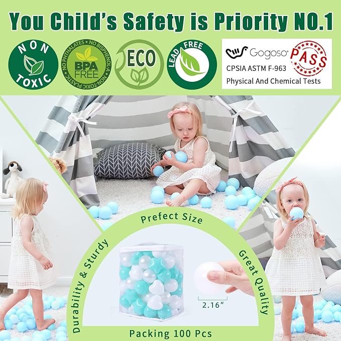 - Safe and Durable Fun: Enjoy peace of mind with our pack of 100 non-toxic toy balls, featuring star heay and balls. Crafted from food-grade PE material, these balls are phthalate-free, BPA-free, lead-free, and non-PVC plastic, ensuring safety without compromising fun. Each thickened ball is more durable and brightly colored, promising hours of child-safe play.