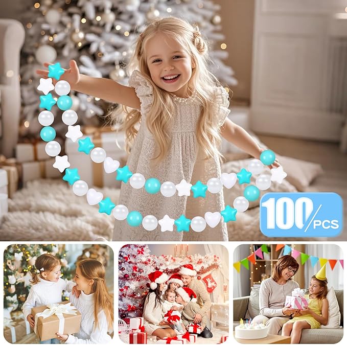 - Color : 100pcs Green+Pearl White Star&Heart&Balls