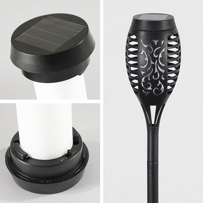 - 【Waterproof & Durable-Solar Torches for Outsideas as Halloween Decor】Our solar light torches uses high-quality waterproof material, this solar lights outdoor waterproof can withstand all kinds of weather all year round. You don't need to worry about rain or snow making the lights get wet. Very suitable for outdoor use. You can place our solar flame lights around swimming pools, gardens, yards, backyards, and trails because it provides beautiful decoration and lighting. Halloween Decorations