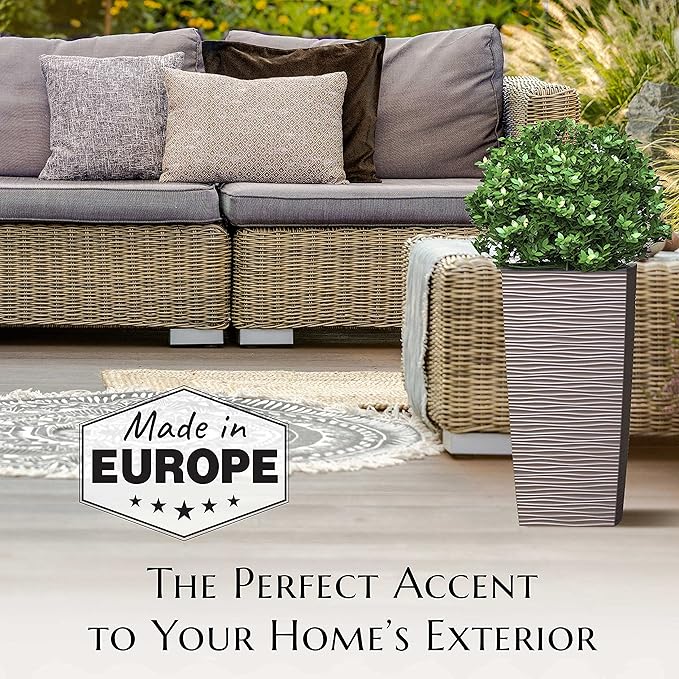 Mueller M-Resin Heavy Duty Tall Planter, Indoor/Outdoor Grande Plant, Tree, Flower Pot, 2-Piece Set, 27.5”, Modern Design, Built-in Drainage, Mocha