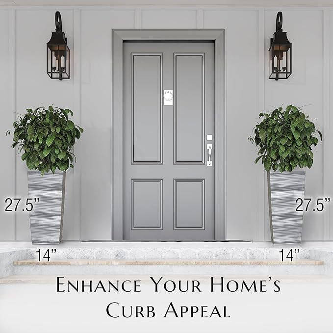 Mueller M-Resin Heavy Duty Tall Planter, Indoor/Outdoor Grande Plant, Tree, Flower Pot, 2-Piece Set, 27.5”, Modern Design, Built-in Drainage, Light Grey