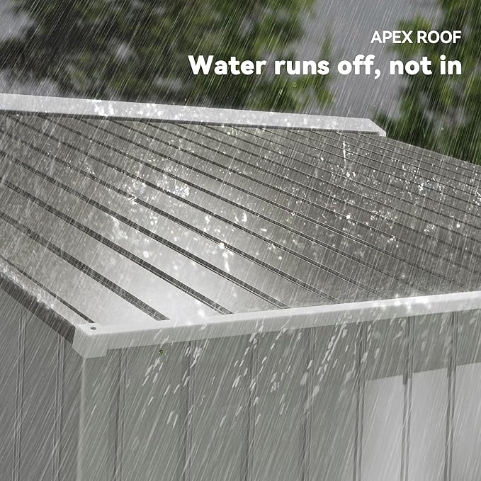 - Spacious Storage Shed: Our outdoor metal shed features plenty of inner storage space so that you can store garden tools, lawn care equipment, and pool supplies. Lockable double doors to secure items (lock is excluded).