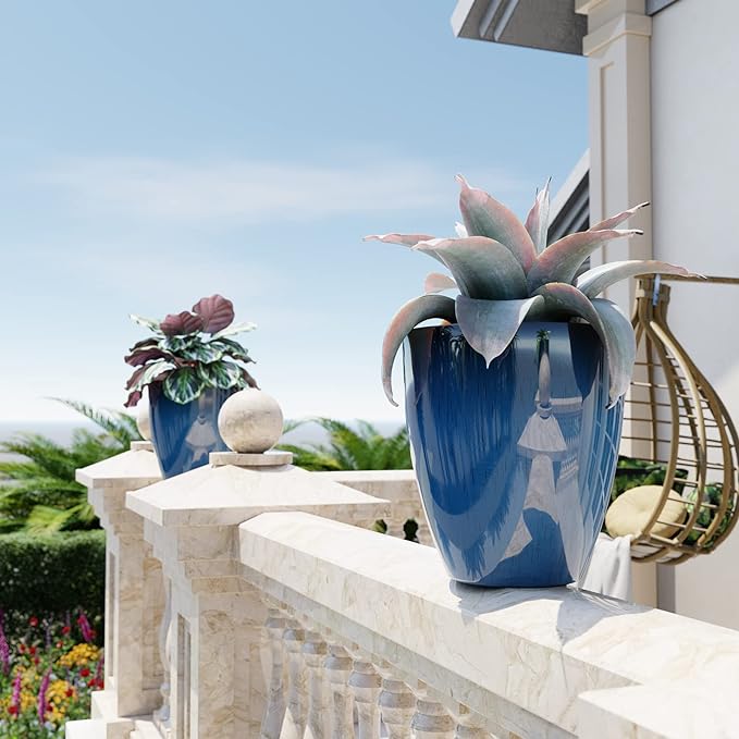 QCQHDU Plant Pots Set of 2 Pack,10 Inch Plant Pot for Indoor and Outdoor Plants with Drainage Hole,Flower Pots Modern Decorative Planter for Garden Plants (Blue)