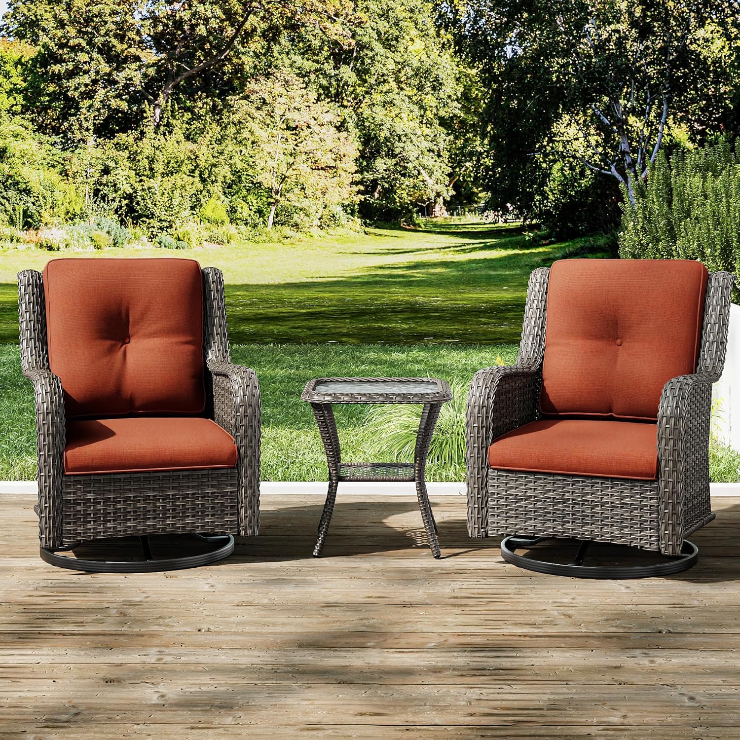 Joyside Outdoor Swivel Rocker Patio Chairs Set of 2 and Matching Side Table - 3 Piece Wicker Patio Bistro Set with Premium Fabric Cushions(Mixed Grey/Orange)