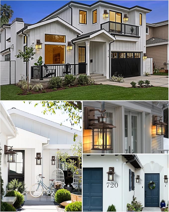 - 【Waterproof & Anti-Rust Aluminum Frame 】Crafted with 100% aluminum and high-hardness tempered glass, our outdoor wall lights are built to withstand the elements. With solid hardness and excellent water resistance, they can withstand storms, snowstorms, and other extreme weather conditions without rusting or deteriorating over time. Keep your outdoor spaces looking brand new with our durable and weatherproof outside lights, perfect for gardens, porches, backyards, garages, and more.