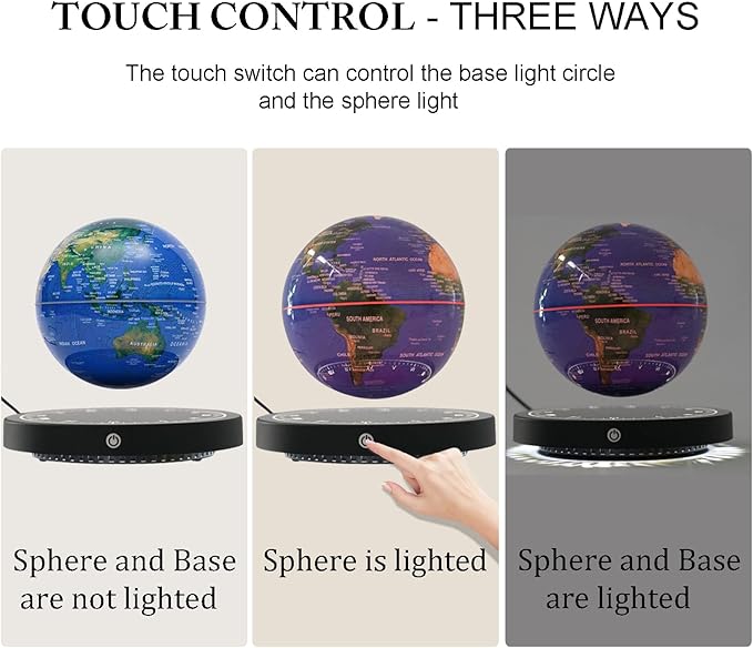 - 【UPGRAD TECHNOLOGY】Beautiful and futuristic world globe!Magnetic levitation globe is an awesome high tech gadget that people of all ages will enjoy. To have something hovering, levitating, floating and giving the illusion of anti gravity.Rotates 360 degree while hanging in the air