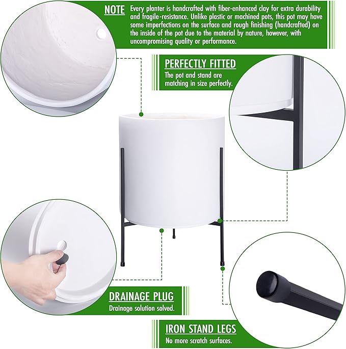 - Handcrafted Fiber Clay Planter: The planter is handcrafted from fiber clay and has a modern round white pot design.