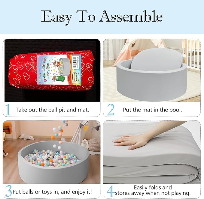 - 【Indoor Fun for Children】Let your toddler explore, learn, and play safely indoors with our kids ball pit! This engaging activity helps develop develop their cognitive and motor skills while providing hours of joyful entertainment.