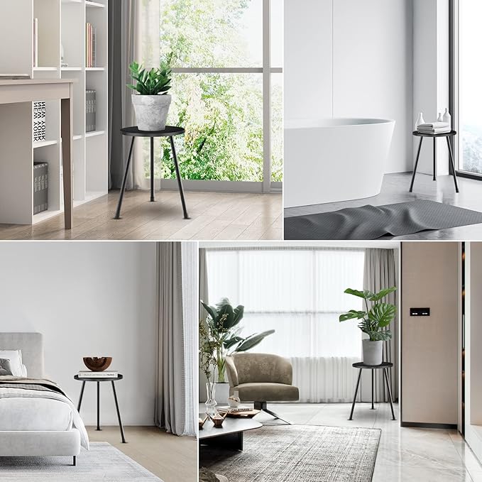 - 【Assemble in 60 Sec & Adjustable Height】Just connect the 2 part of metal legs together and tighten the 3 legs onto the board without tools. The bottom of the pot holder is equipped with silicone pads to balance the legs and prevent scratches and slipping. Besides, our plant stool can adjust to 16" or 14" in height by removing short legs to meet your different needs