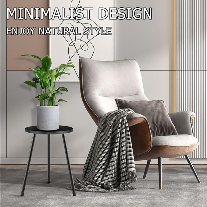 Plant Stand Indoor, Mid Century Wood Plant Stand Black Plant Table for Flower Pots, Tall Metal Plant Holder, Modern Home Decor Small Round Side End Table (11.8"x16")